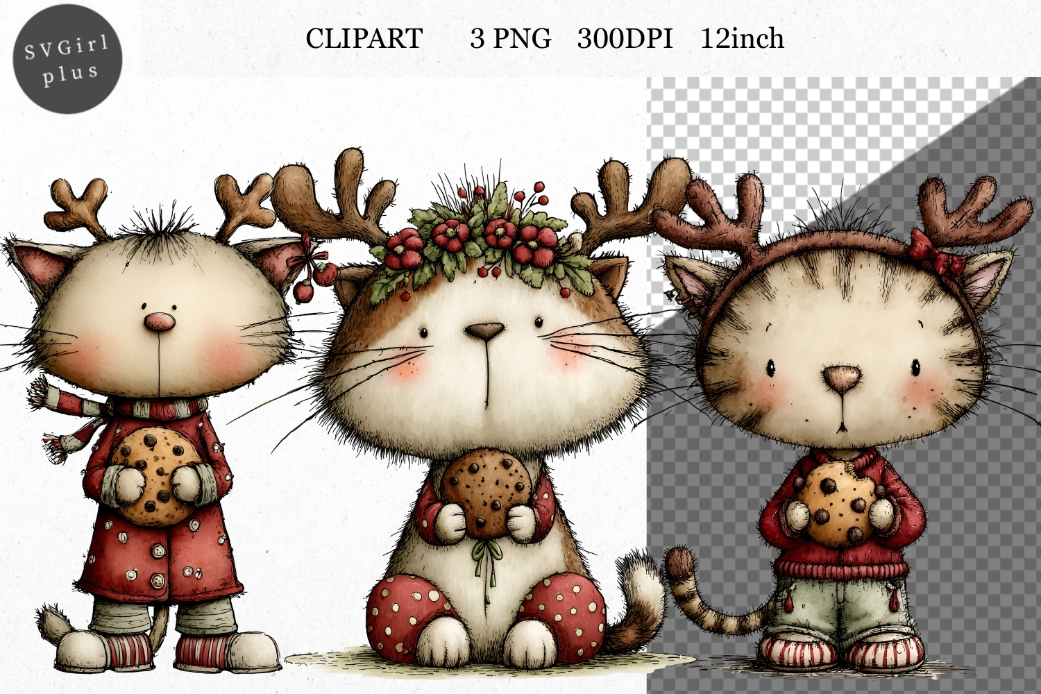 Cat Clipart, Christmas Cat, Whimsical Clipart, example image 1
