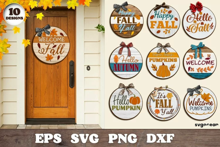 Svg Signs Autumn Fall Cut File Wall Art Door Hanger Autumn Sign Round Sign Fall Round Signs