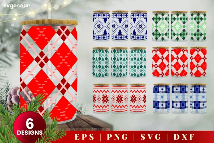 Christmas Pattern Can Glass | Svg Bundle | 16 Oz Libbey