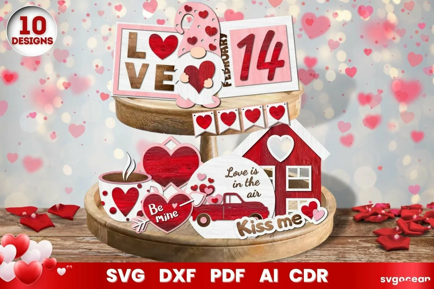 Valentines Day Tiered Tray SVG | Papercut | Laser Cut
