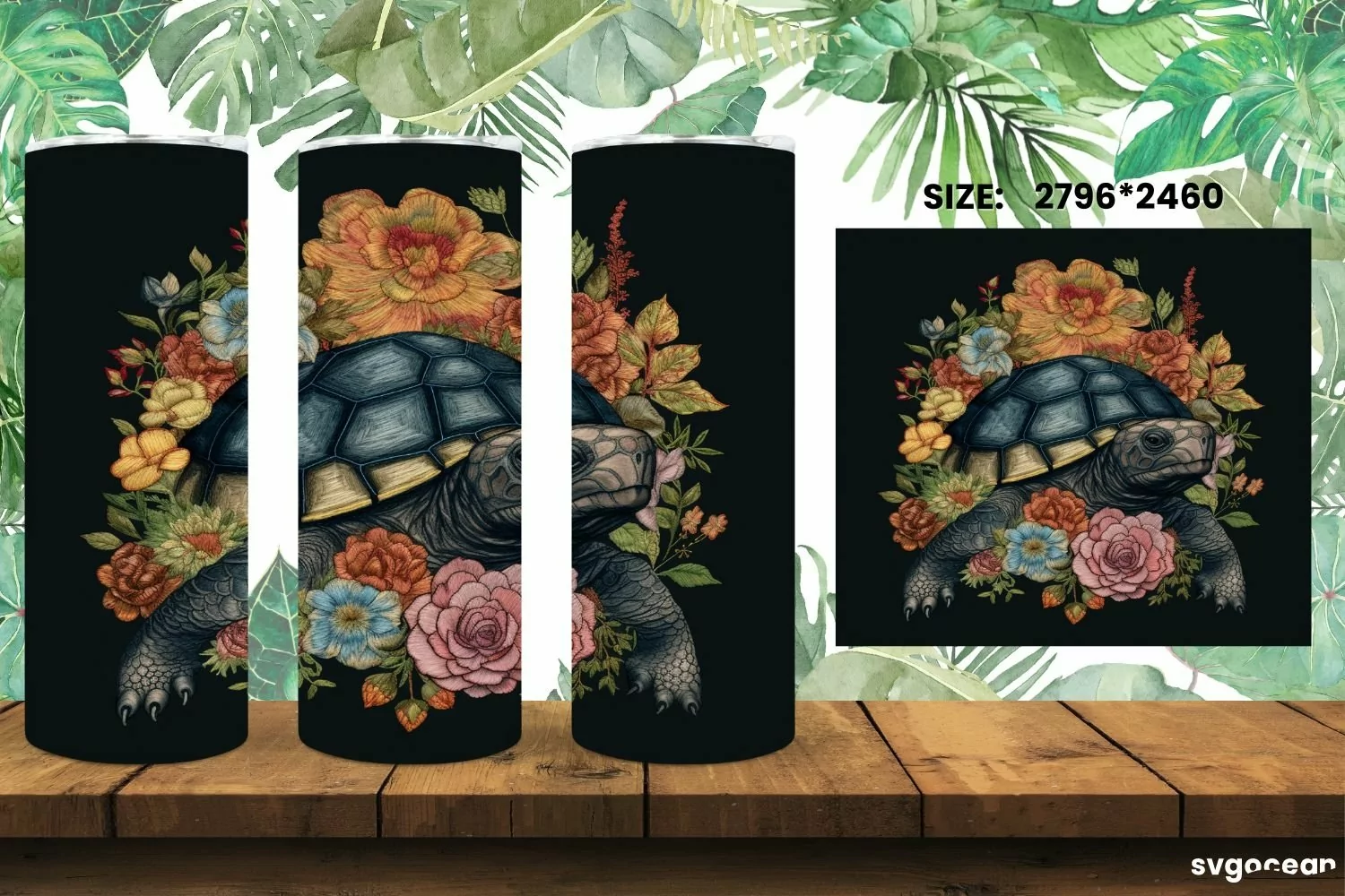 Embroidery Turtle Tumbler Wrap | Skinny 20 oz | Sublimation