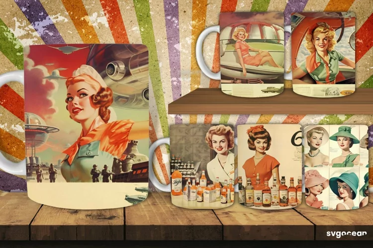 11 Oz Mug Vintage Sublimation Mug Sublimation Seamless Sublimation Seamless Mug Design Retro Mug Skinny Mug Png Pin-up Style Design Pin-up Mug Vintage Illustration Mug