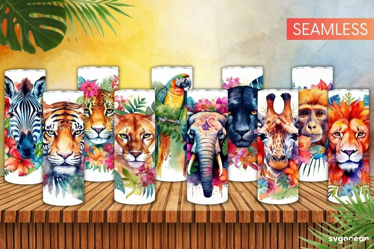 Skinny Tumbler 20 Oz Tumbler Panda Tumbler Animals Tumbler Elephant Tumbler Lion Tumbler Wrap Embroidery Sublimation Tiger Tumbler Design Embroidery Tumbler Wrap Embroidery Tumbler
