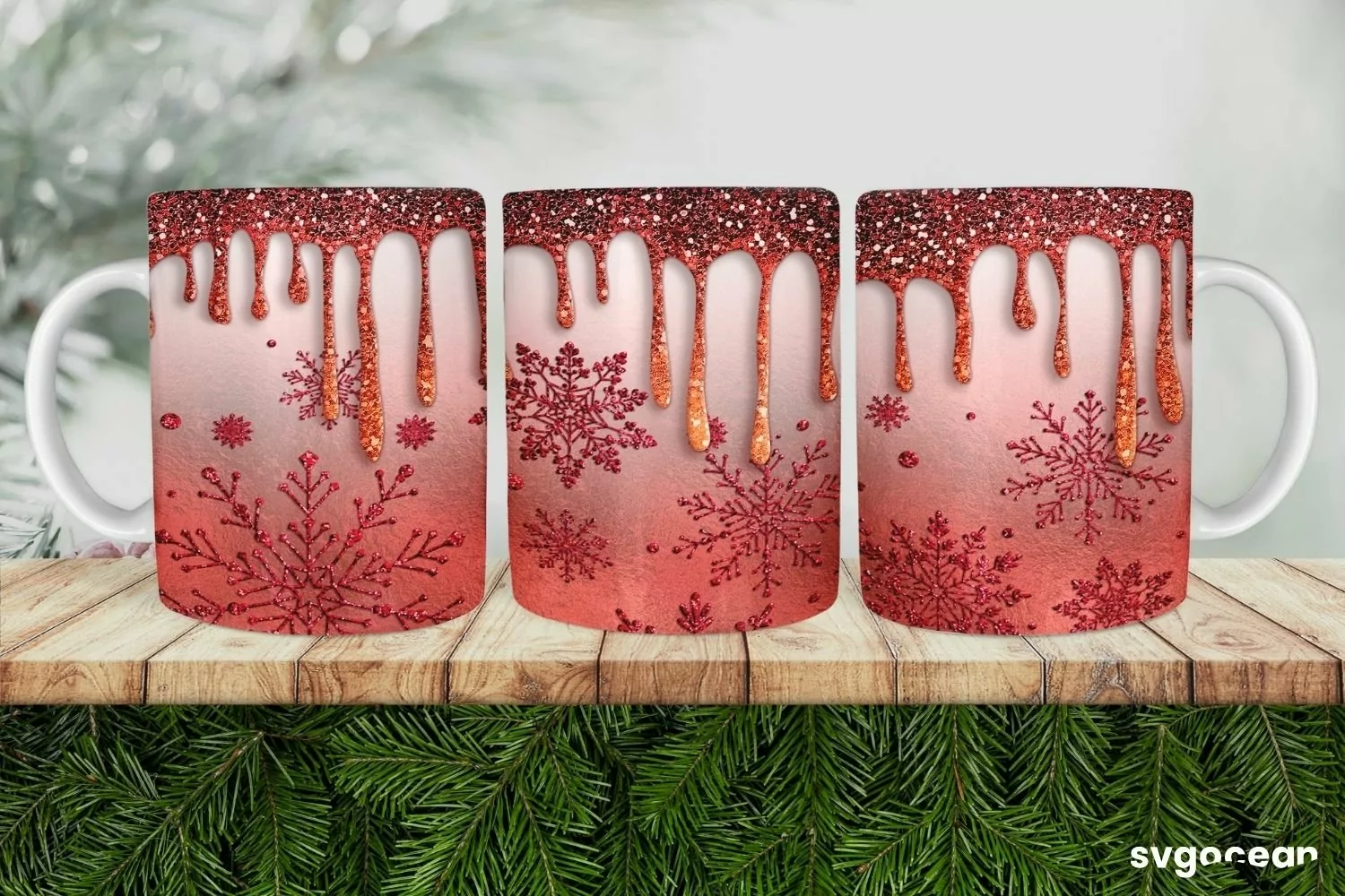 Similar Design Products to Red Glitter Mug Wrap | Christmas Sublimation | PNG