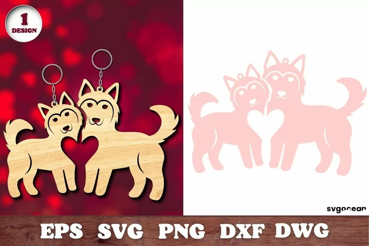 Valentine's Day Wolves Couple Keychain | Laser Cut example image 1