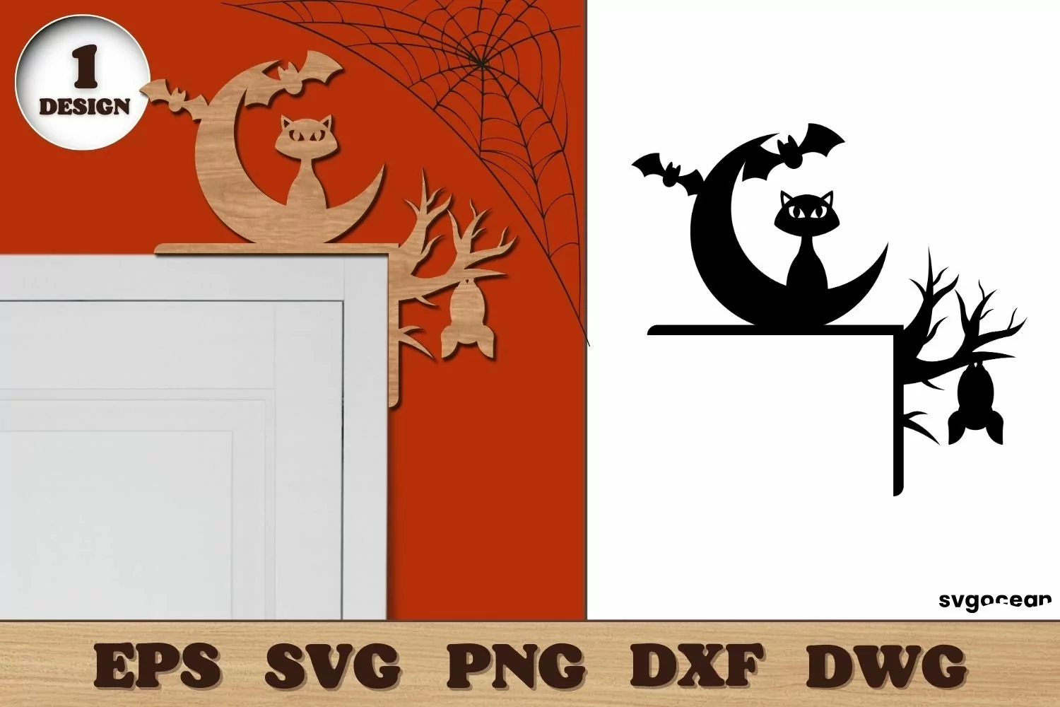 Halloween Cat Door Corner Laser File | Template | Glowforge