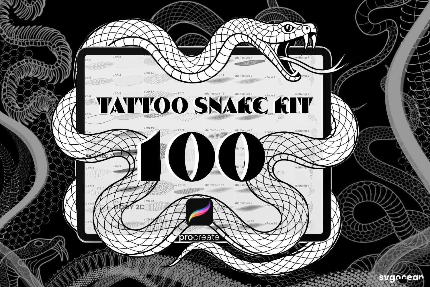 Snake Tattoo Brushes for Procreate | Tattoo Shading | Stamps