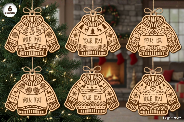 Christmas Sweater Ornaments SVG Bundle | Laser Cut | SVG