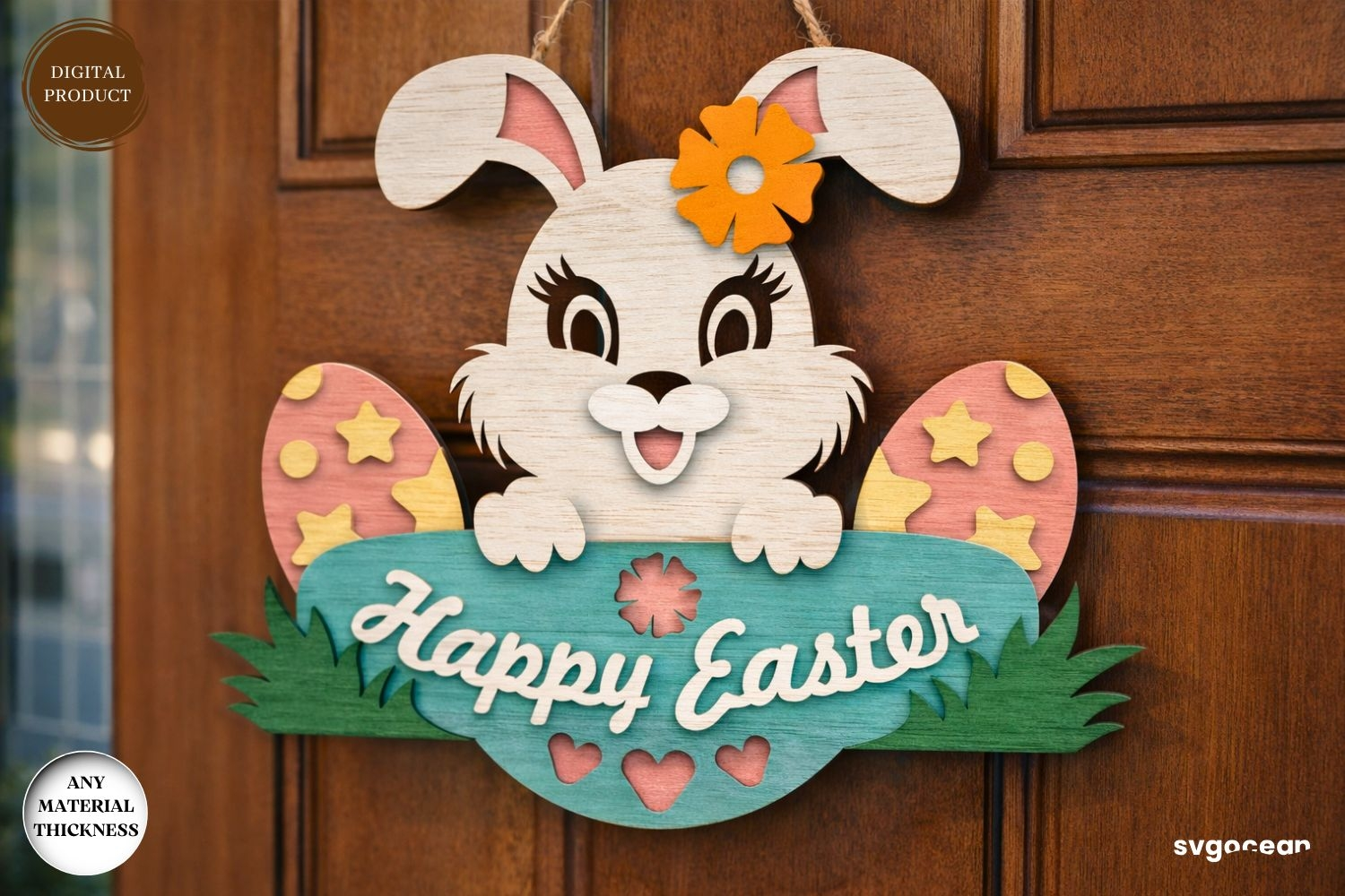 Easter Bunny Door Hanger Laser Cut | Wooden Door Sign | SVG example image 1