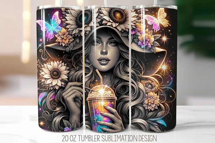 Floral Girl Tumbler Sublimation Design | 20oz Skinny Tumbler