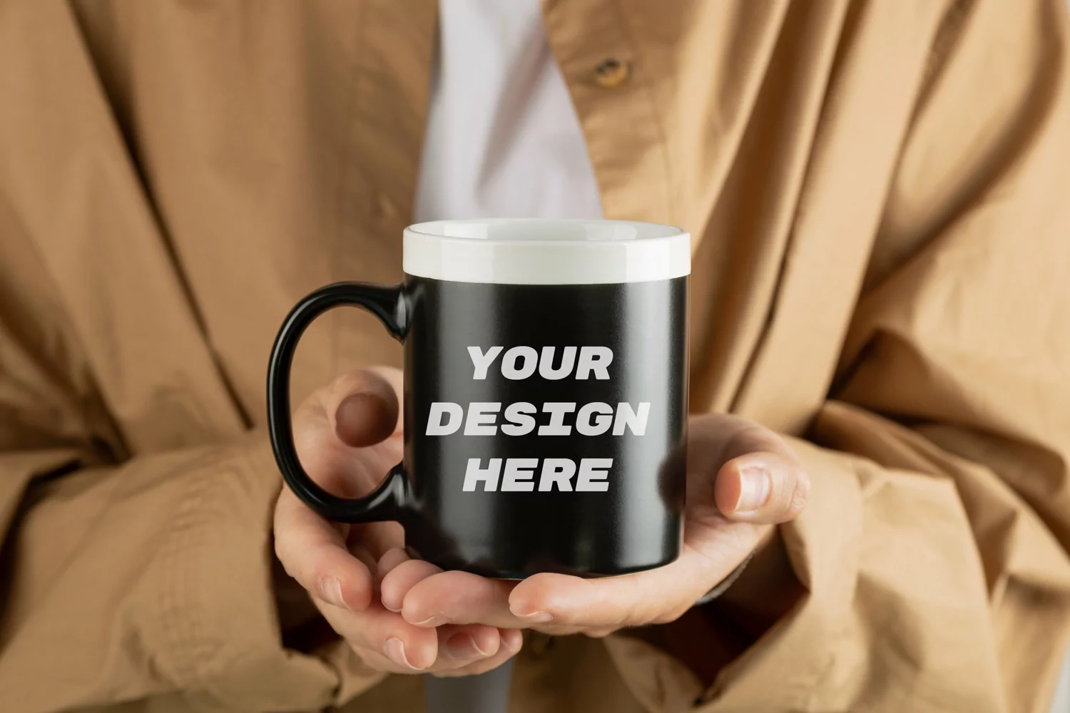 Similar Design Products to Black coffee mug mockup. Mock up for design demonstration.