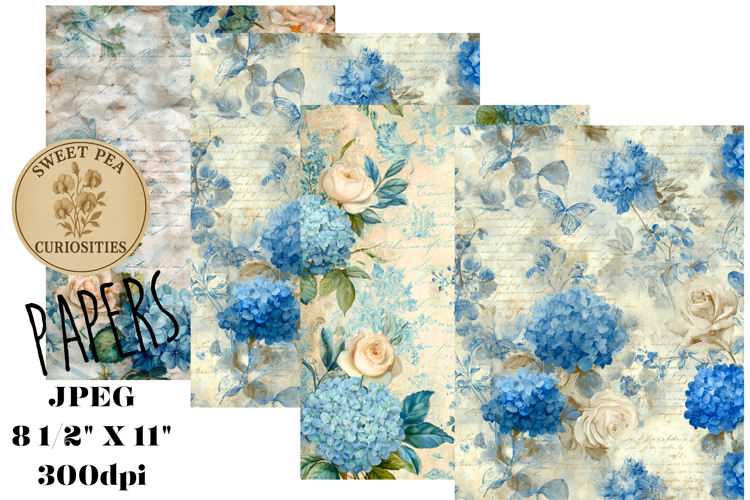 Similar Design Products to Blue, Flowers, Paper, Shabby Chic, Papers, Junk Journal