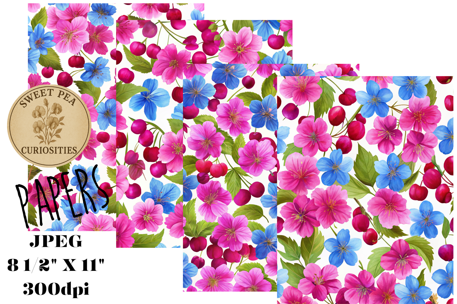 Similar Design Products to Cherries, flowers, Papers, Junk Journal