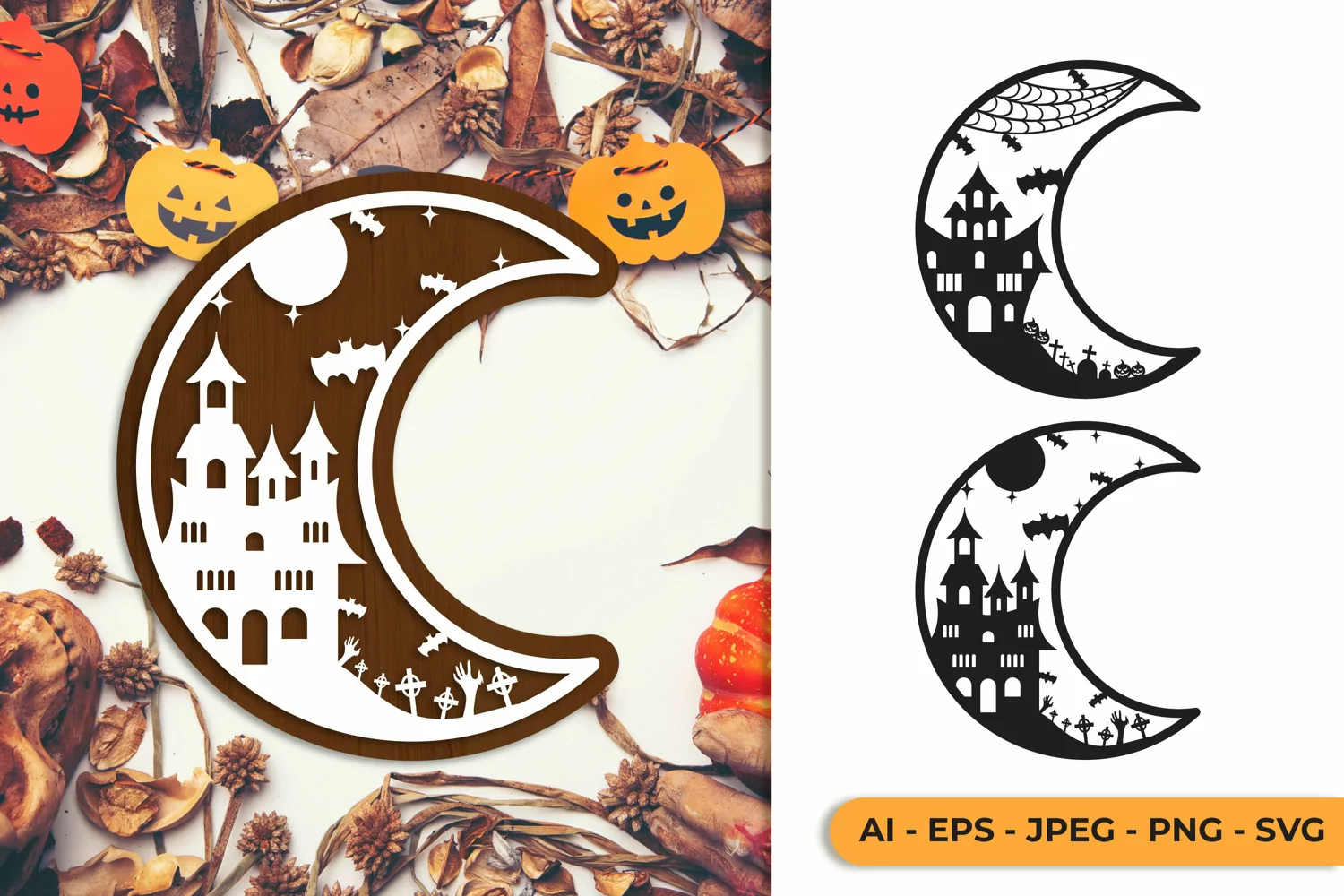 Svg Halloween Svg Cut Files Moon Svg Happy Halloween Svg Laser Cut Files Laser Cut Design Halloween Moon Svg Halloween Castle Svg Halloween Castle Laser Cut