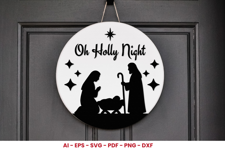 Christmas Round Sign Laser Cut SVG | Christmas Door Hanger