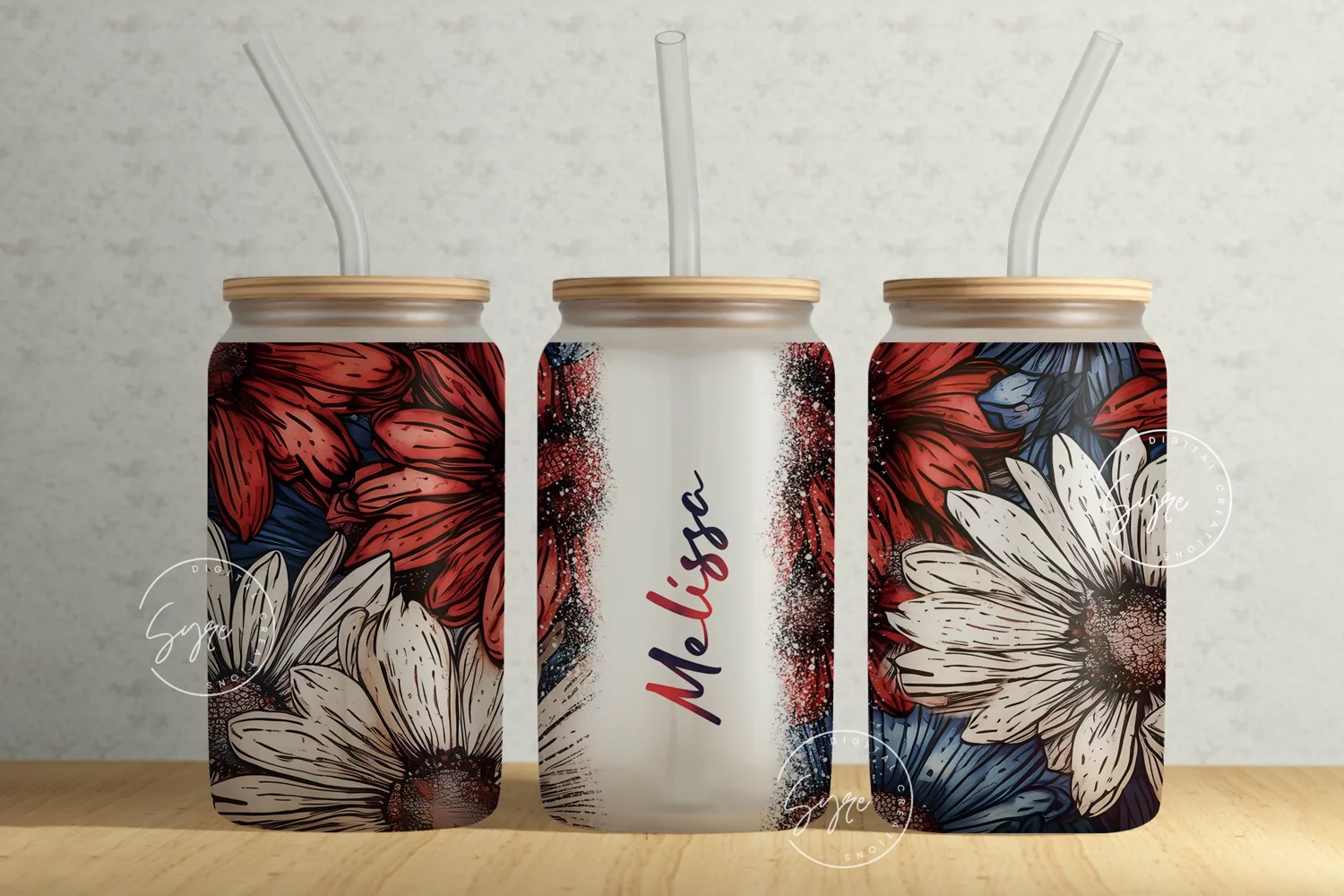 Flower Design Sublimation Design Add Your Name Png Tumbler Usa Flag Tumbler Glass Can Wrap Glass Can Tumbler Glass Can Png 16 Oz Libbey Glass Can Tumbler 16 Oz Libbey Tumbler