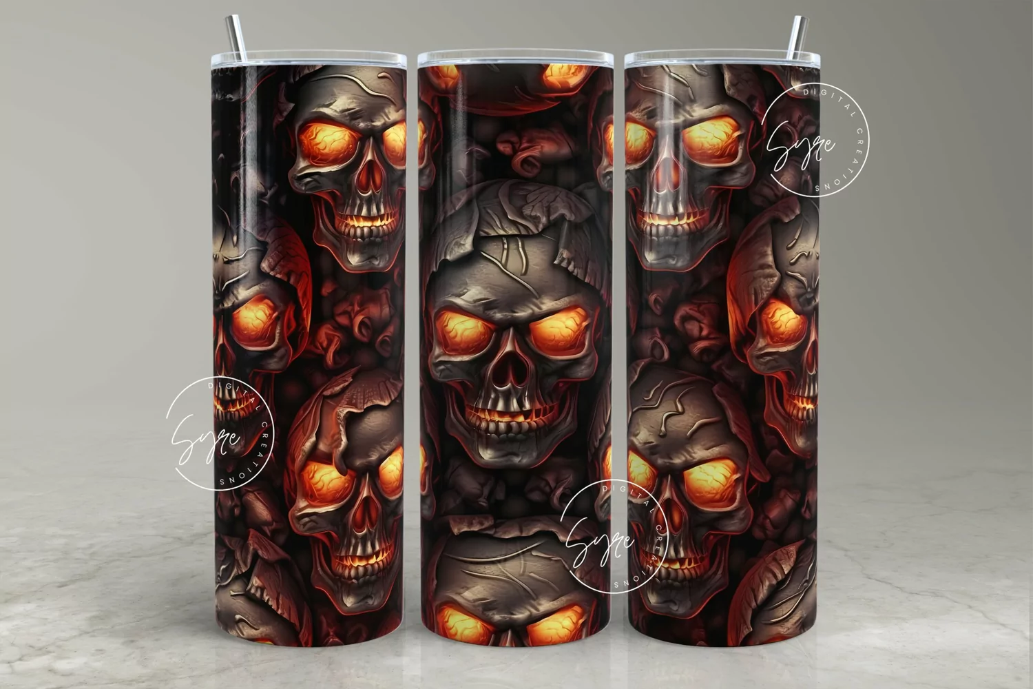 3D Skulls Tumbler Wrap, Eyes on Fire, Halloween, Gothic Tumbler, 20oz Skinny Tumbler Sublimation, Creepy, Seamless, 3D Tumbler, Digital File