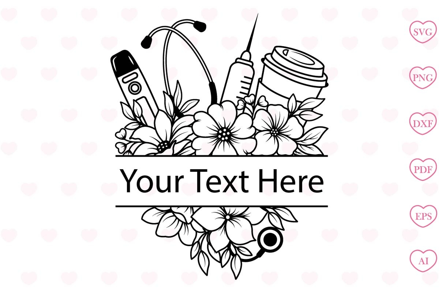 Floral Nurse Monogram Svg Cut File ( High Resolution 300 DPI )