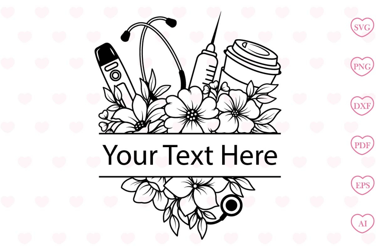Floral Nurse Svg , Flower Svg, Floral Nurse Split Monogram example image 1