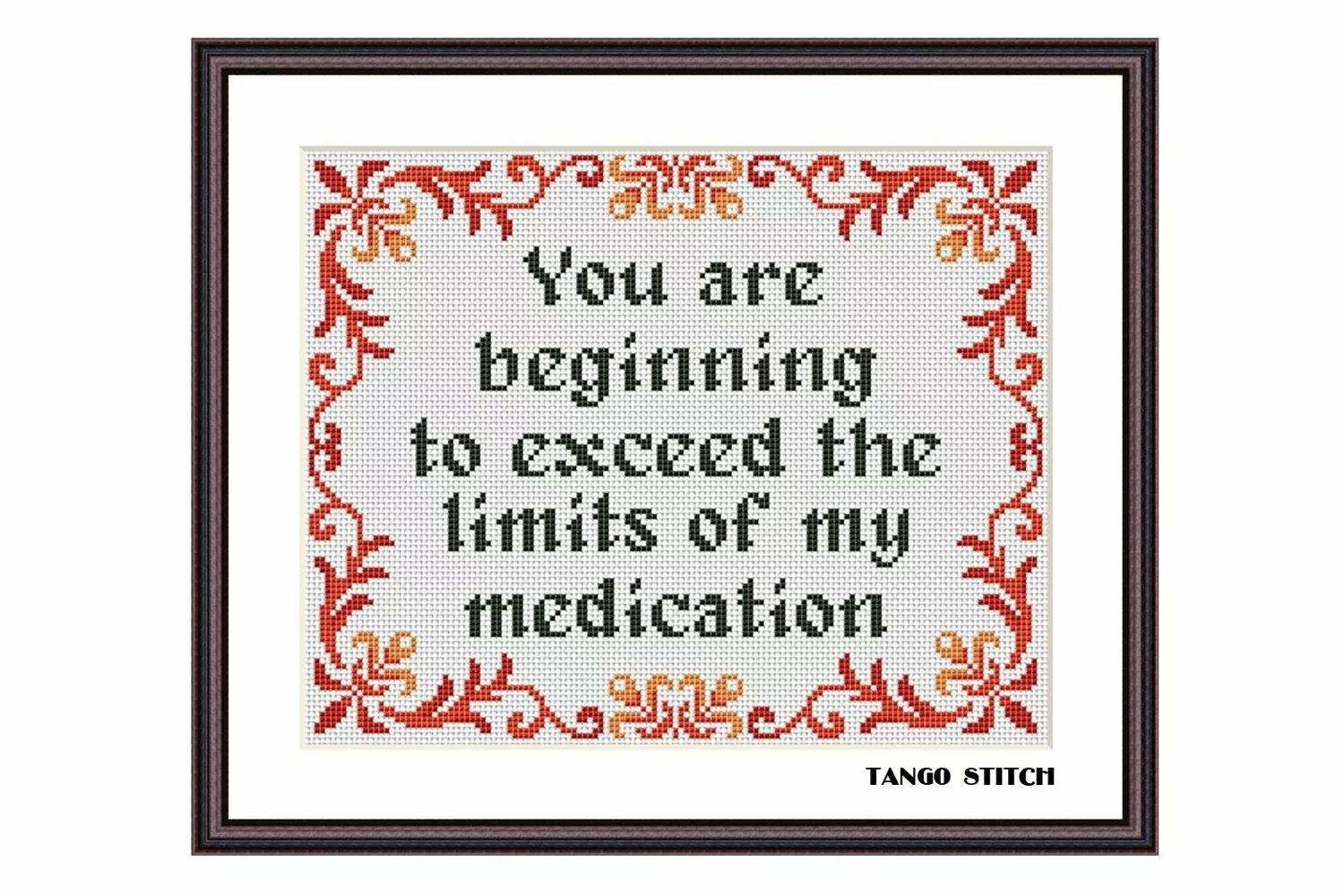 Limits of my medication funny sarcastic cross stitch pattern example image 1