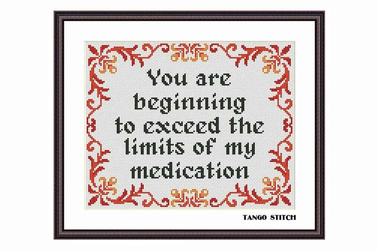 Limits of my medication funny sarcastic cross stitch pattern, Tango Stitch