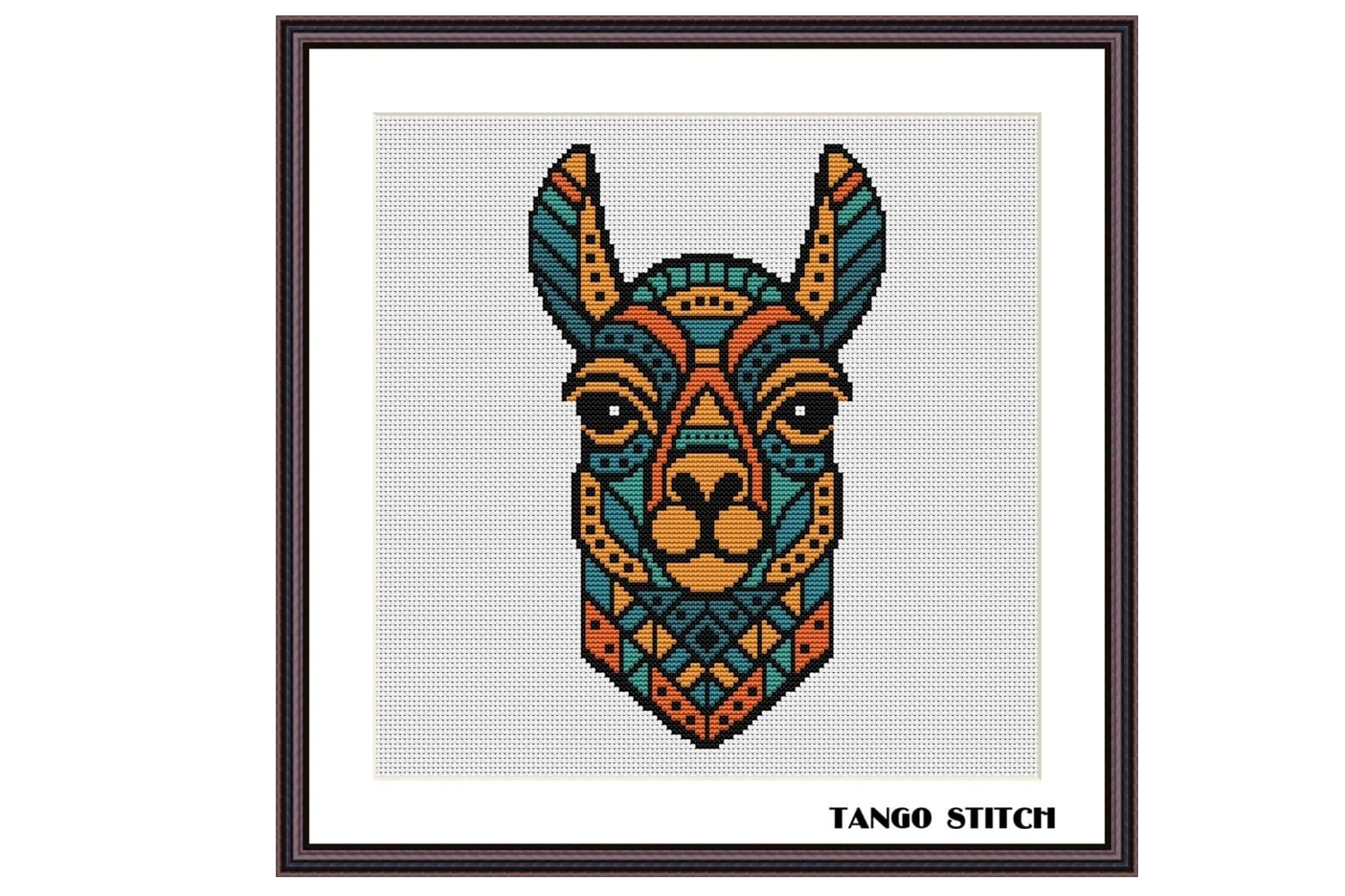 Cute llama geometric design cross stitch pattern - Tango Stitch