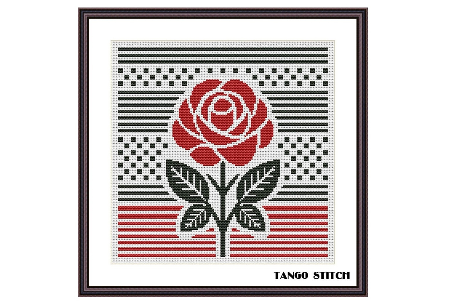 Red rose flower modern art cross stitch pattern - Tango Stitch