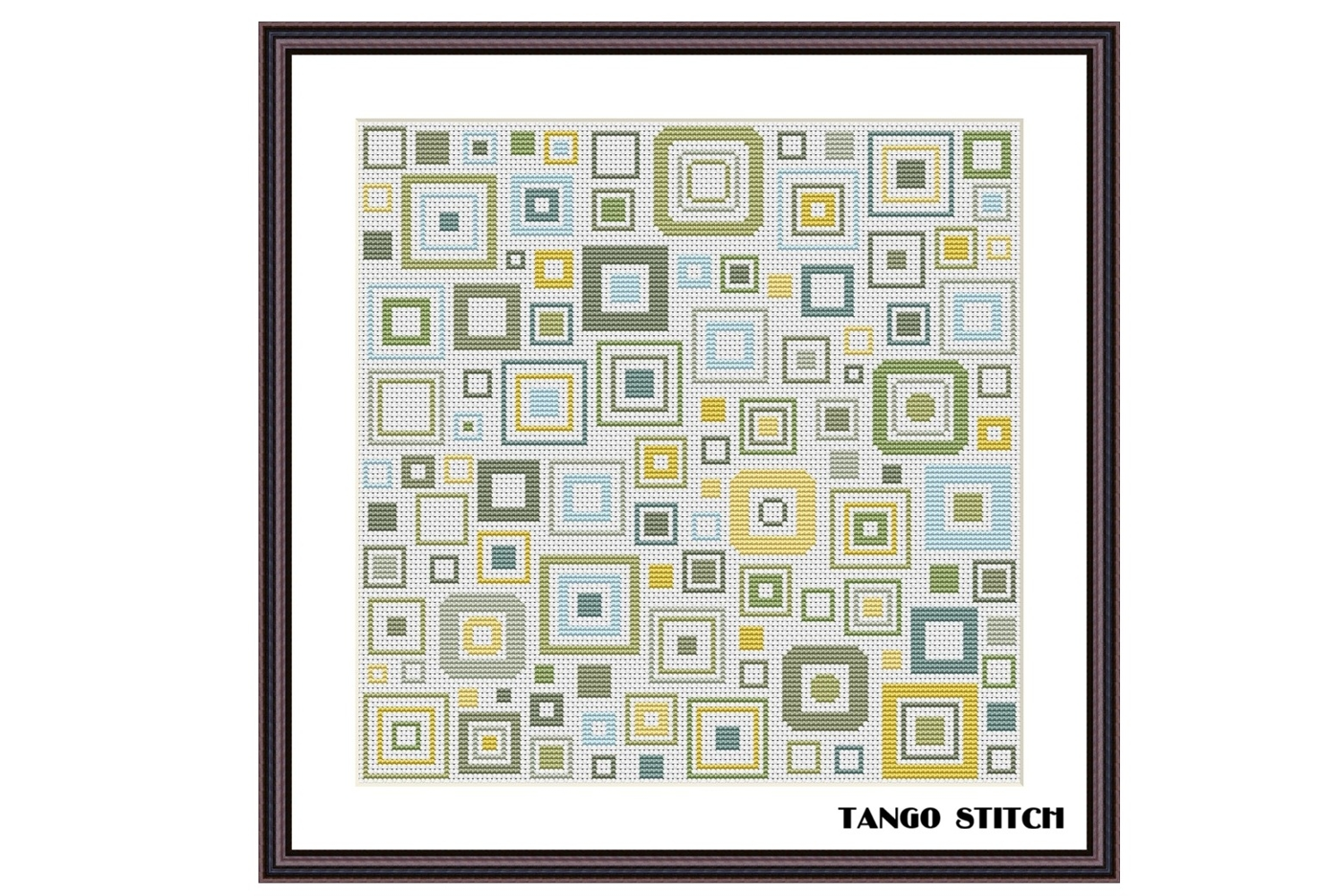 Green blue yellow geometric squares cross stitch pattern - Tango Stitch