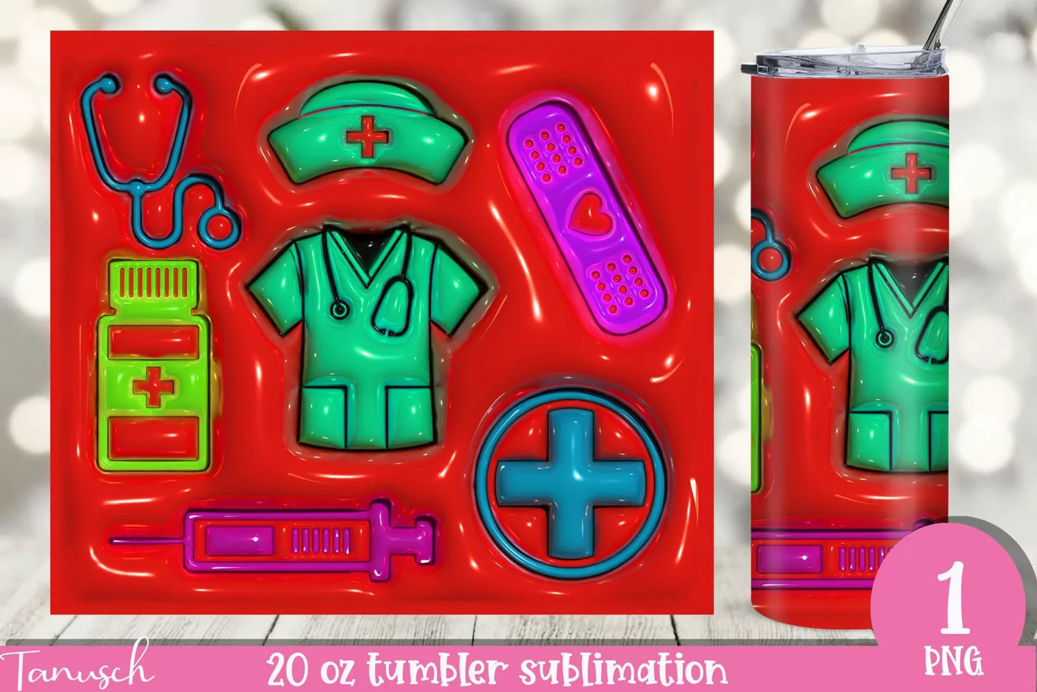 3d puff nurse sublimation tumbler, 3d inflate wrap