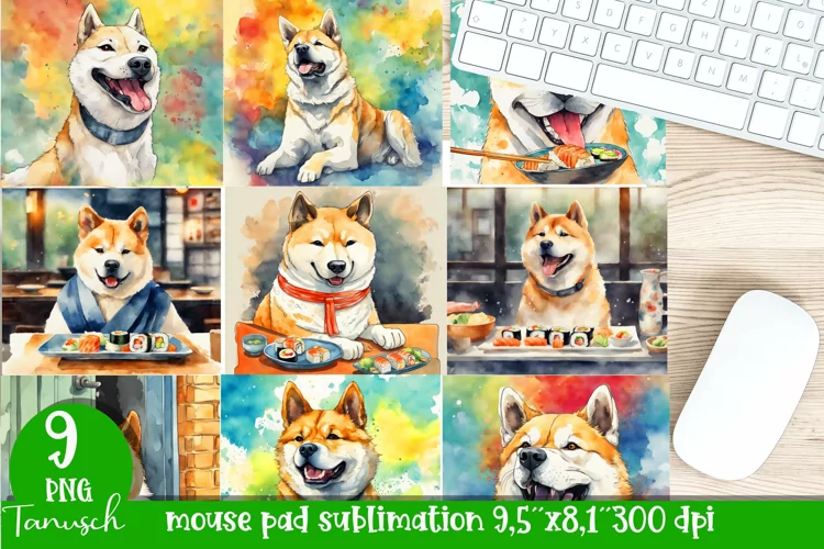 watercolor akita dog mouse pad sublimation bundle example image 1