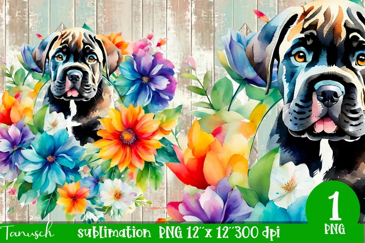 WatercolorSublimationWatercolor DogDog With FlowersCane CorsoWatercolor Dog SublimationWatercolor Dog Portrait PngCane Corso PngCane Corso SublimationMastiff Png