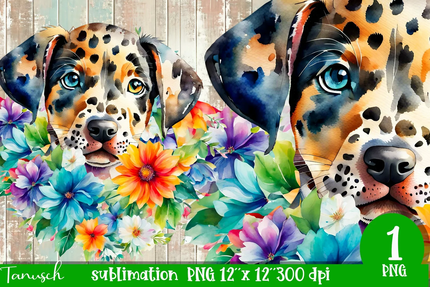 Watercolor Flowers Sublimation Watercolor Dog Dog With Flowers Catahoula Leopard Dog Watercolor Dog Sublimation Leopard Dog Catahoula Watercolor Dog Portrait Png Catahoula Sublimation