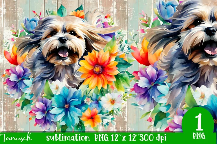 Watercolor Dog Sublimation Watercolor Dog Lhasa Apso Watercolor Dog Sublimation Dog And Flowers Watercolor Dog Portrait Png Lhasa Sublimation Lhasa Apso Flowers
