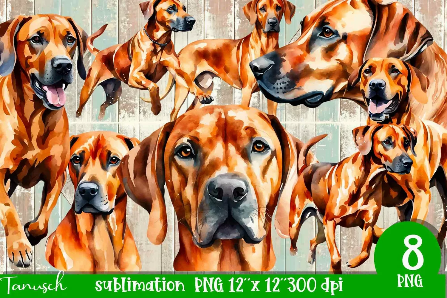 watercolor RHODESIAN RIDGEBACK bundle sublimation / clipart