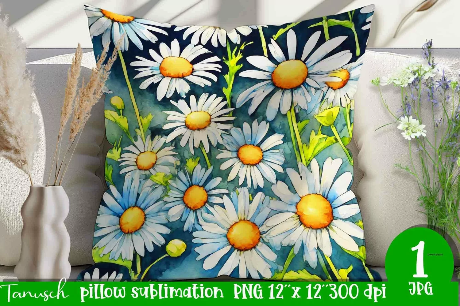 daisy pillow sublimation / watercolor pillow design example image 1