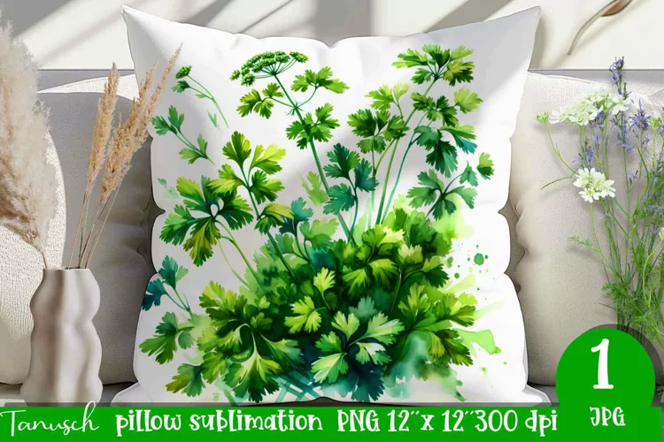Home Decor Coriander Watercolor Herbs Watercolor Pillow Garden Pillow Sublimation Magic Garden Sublimation Herbs Pillow Garden Pillow Coriander Pillow Watercolor Coriander Sublimation