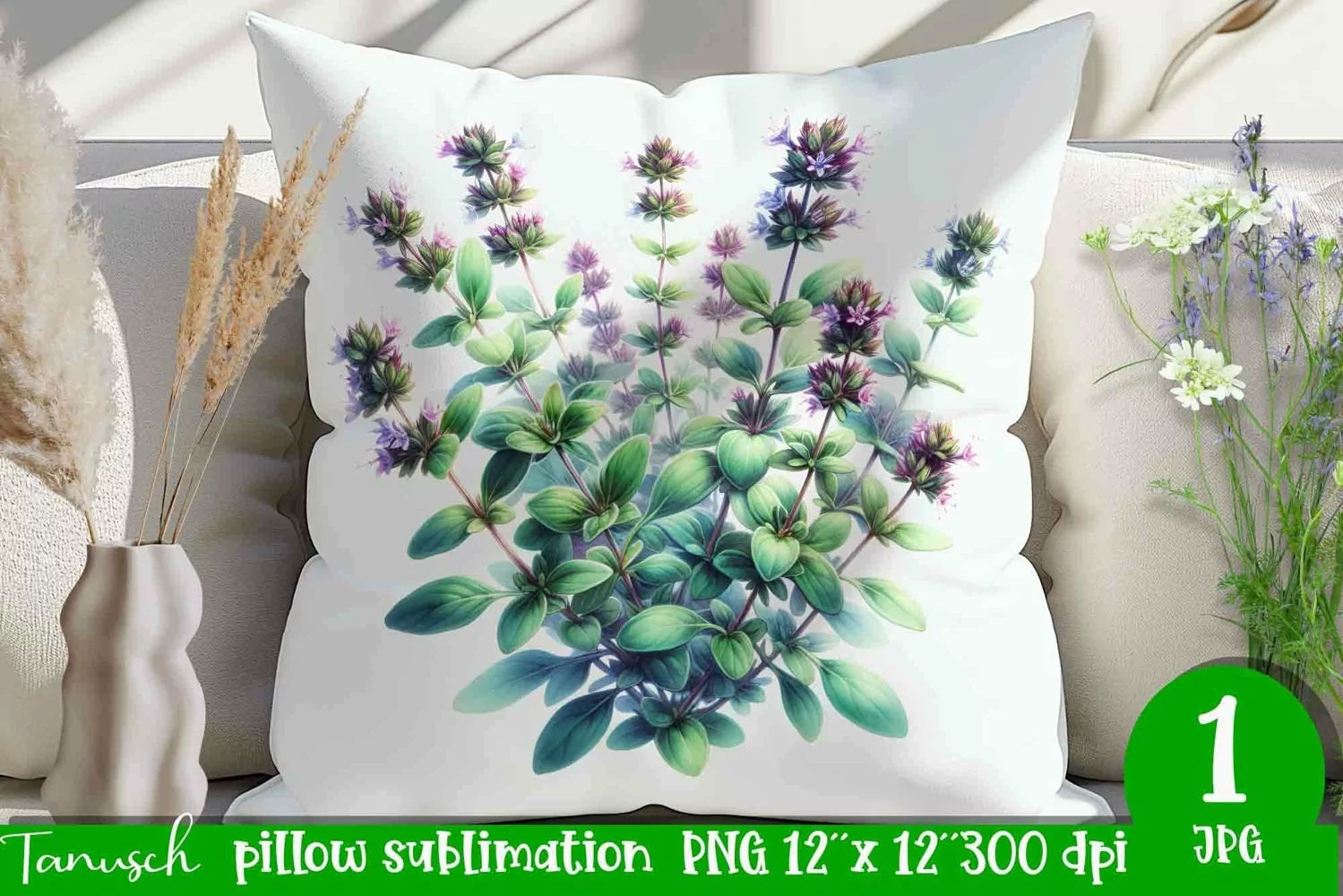 THYME pillow sublimation / watercolor herbs garden PNG example image 1