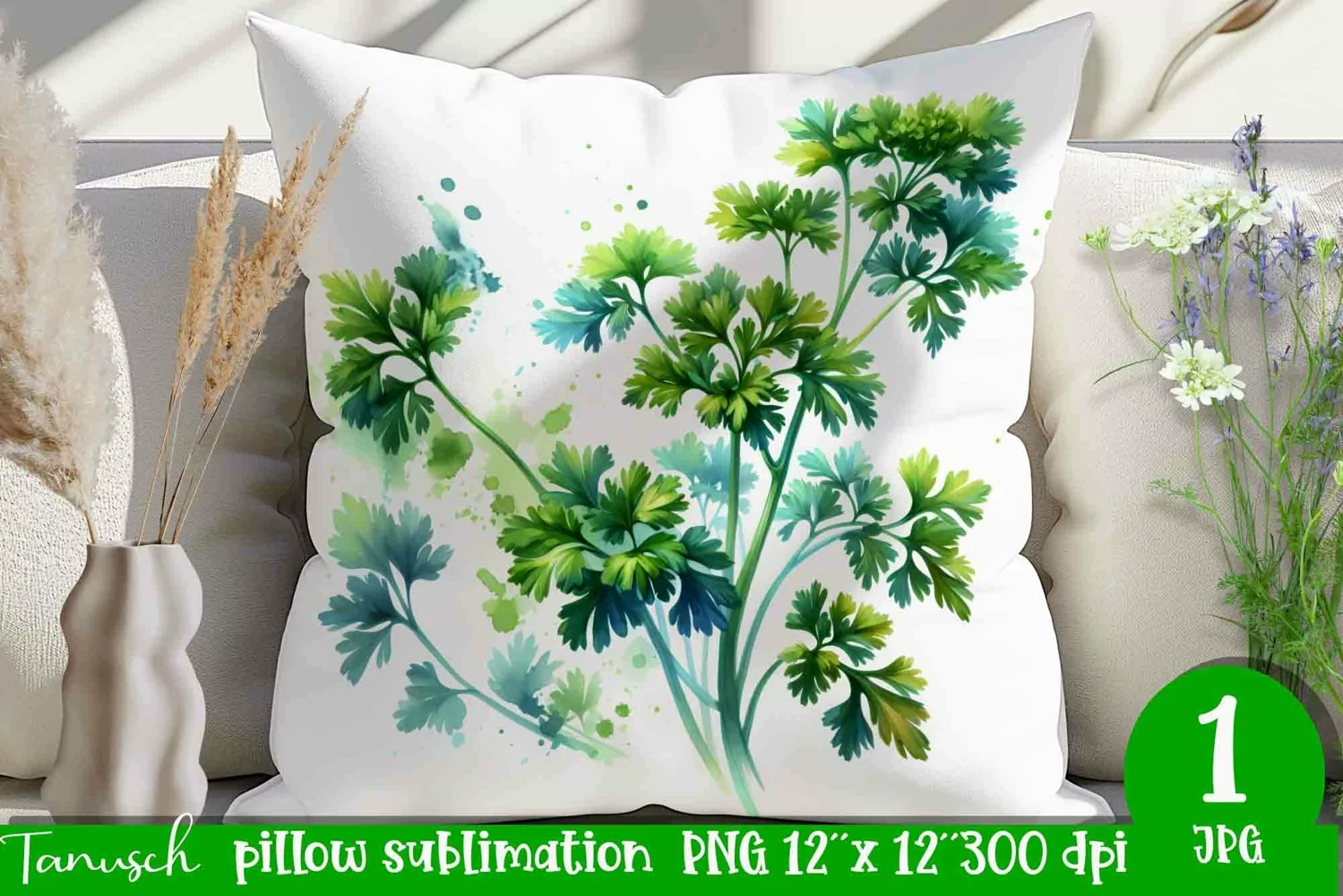 PARSLEY pillow sublimation / watercolor herbs garden PNG