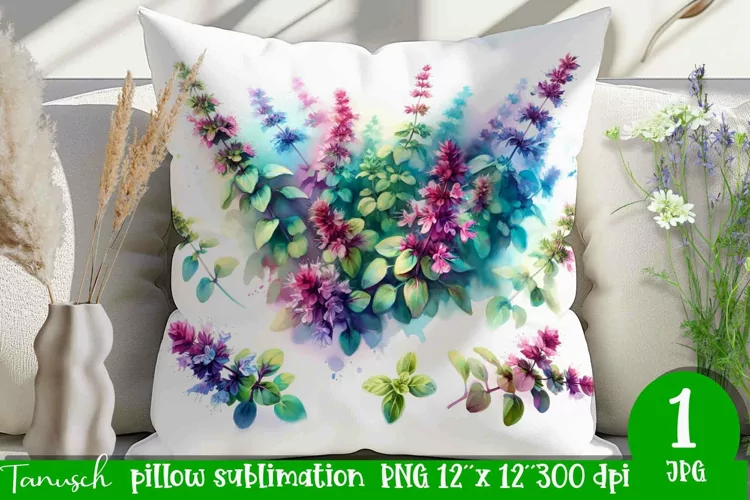 OREGANO pillow sublimation / watercolor herbs garden PNG