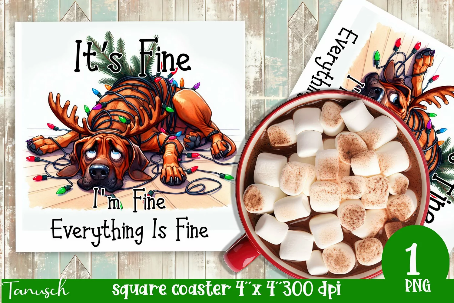 Rhodesian Ridgeback Funny Christmas Sublimation Funny Christmas Dog Christmas Coaster Sublimation It's Fine I'm Fine Everything Is Fine Square Coaster Sublimation Christmas Dog Coaster Christmas Rhodesian Ridgeback Everything Is Fine Png Funny Rhodesian Ridgeback