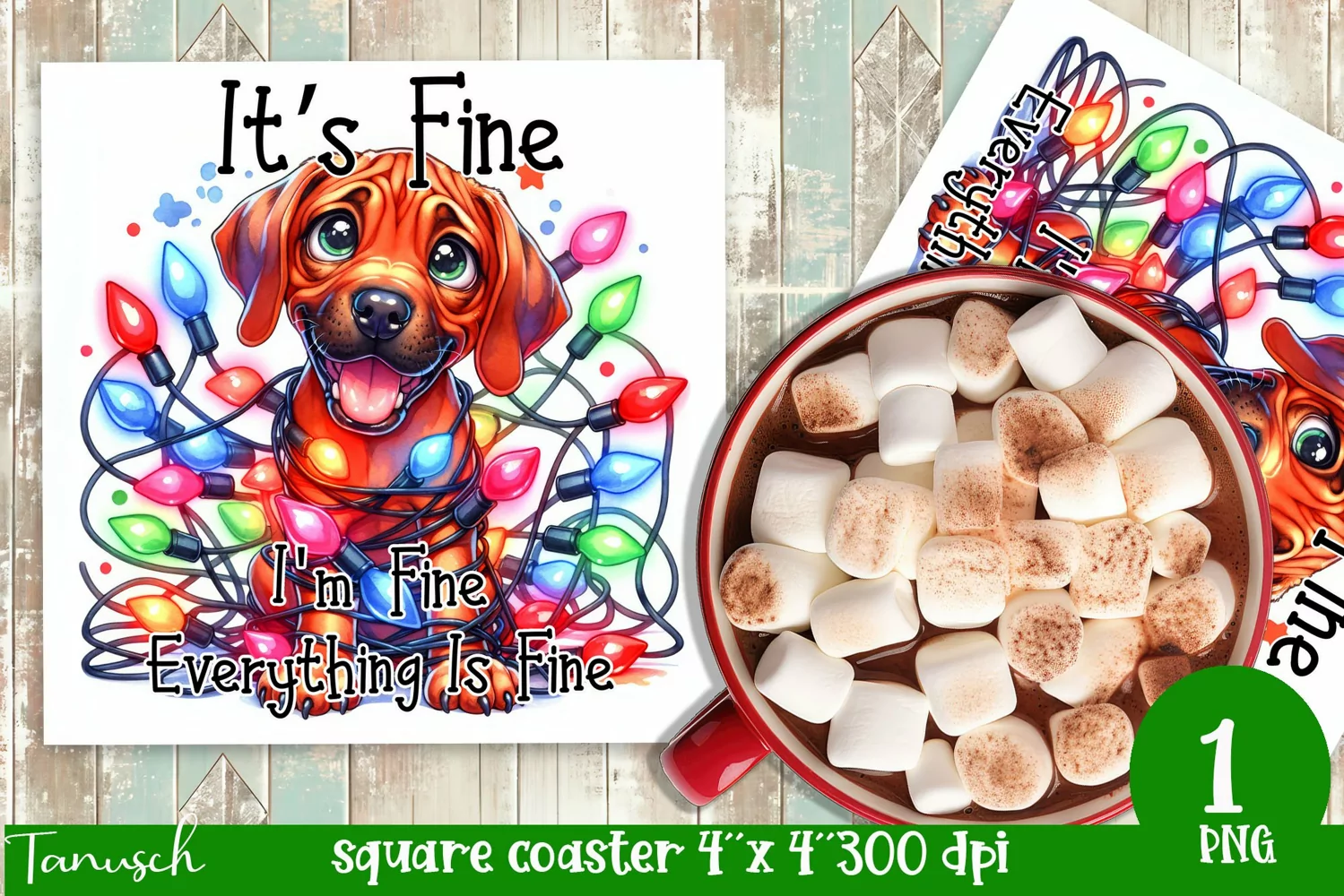 Rhodesian Ridgeback Funny Christmas Sublimation Funny Christmas Dog Christmas Coaster Sublimation It's Fine I'm Fine Everything Is Fine Square Coaster Sublimation Christmas Dog Coaster Christmas Rhodesian Ridgeback Everything Is Fine Png Funny Rhodesian Ridgeback