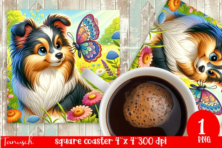 Shetland Sheepdog Square Coaster Dog With Flowers Png Square Coaster Sublimation Butterfly Square Coaster Flowers Coaster Sublimation Dog Square Coaster Funny Dog Coaster Shetland Sublimation Sheepdog Coaster
