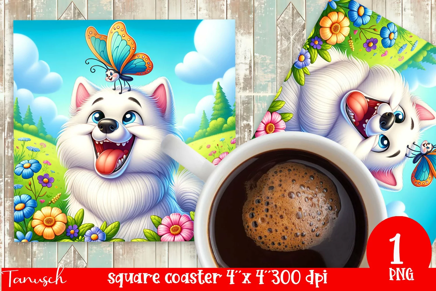 American Eskimo Square Coaster Dog With Flowers Png Square Coaster Sublimation Butterfly Square Coaster Flowers Coaster Sublimation Dog Square Coaster Eskimo Sublimation Funny Dog Coaster Eskimo Coaster