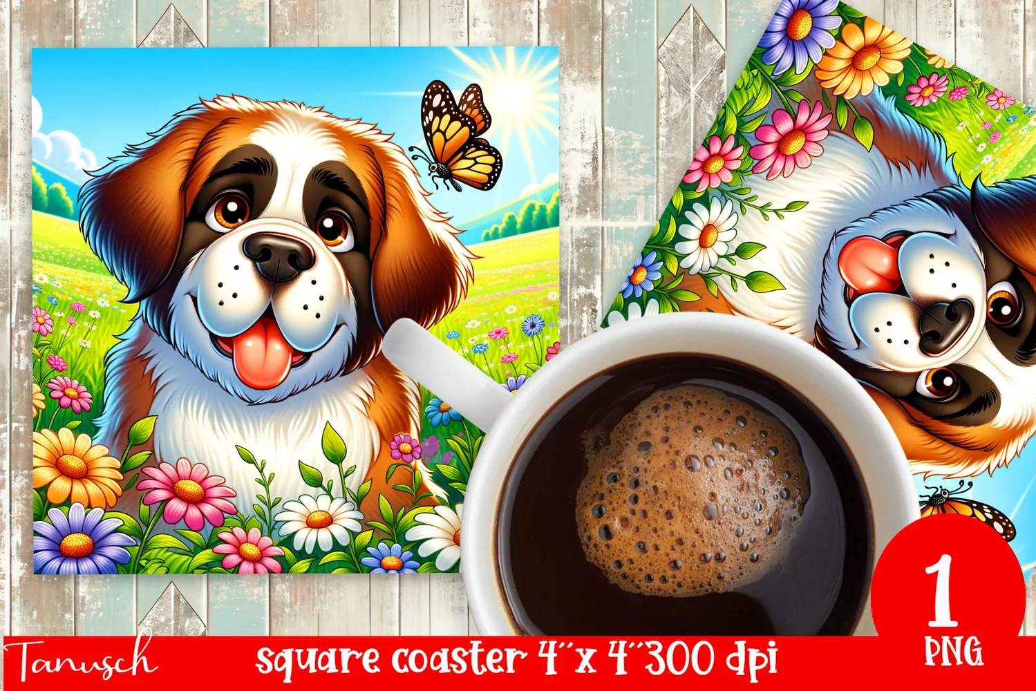 Saint Bernard Square Coaster Dog With Flowers Png Square Coaster Sublimation Butterfly Square Coaster St Bernard Sublimation Flowers Coaster Sublimation Dog Square Coaster Funny Dog Coaster St Bernard Coaster