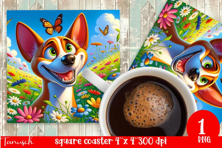 funny square coaster Sublimation PNG flowers dog
