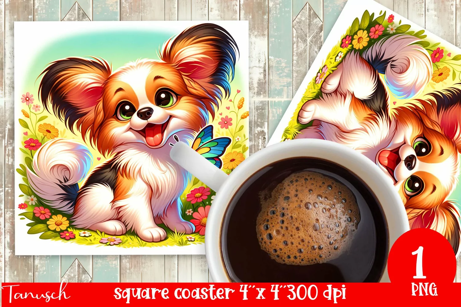 Papillon Square Coaster Dog With Flowers Png Papillon Sublimation Square Coaster Sublimation Butterfly Square Coaster Flowers Coaster Sublimation Dog Square Coaster Funny Dog Coaster Papillon Coaster