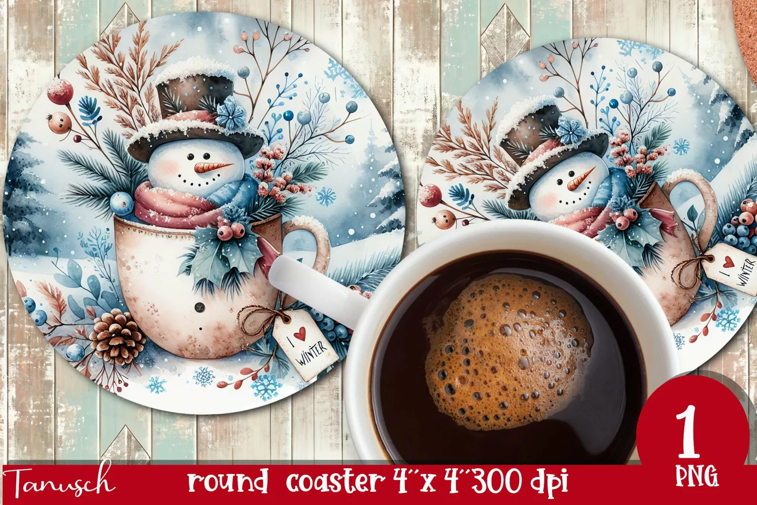 cute rustic Christmas snowman round coaster Sublimation example image 1