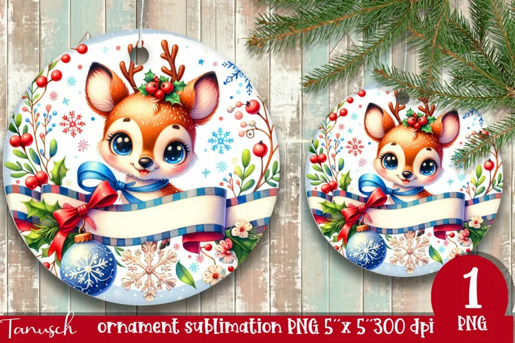 Custom Ornament Christmas Ornament Sublimation Ornament Sublimation Deer Ornament Christmas Deer Sublimation Christmas Baby Sublimation Farm Christmas Ornament Whimsical Christmas Sublimation Christmas Child Sublimation Whimsical Round Ornament