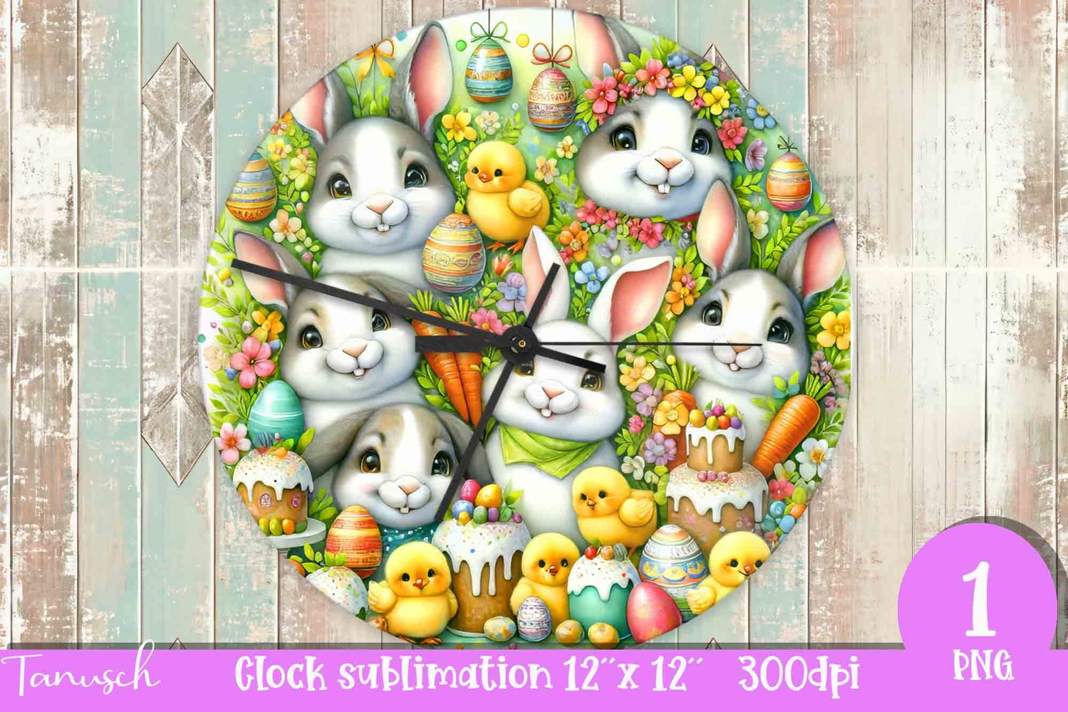 Similar Design Products to cute EASTER rabbit Wall Clock spring Sublimation PNG