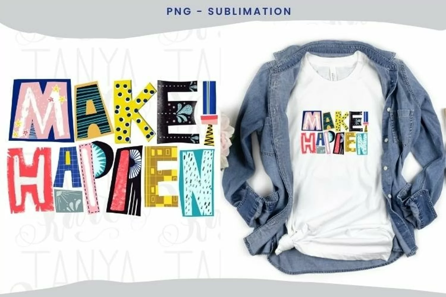 Make It Happen Png Hand Lettered Sublimation Design example image 1